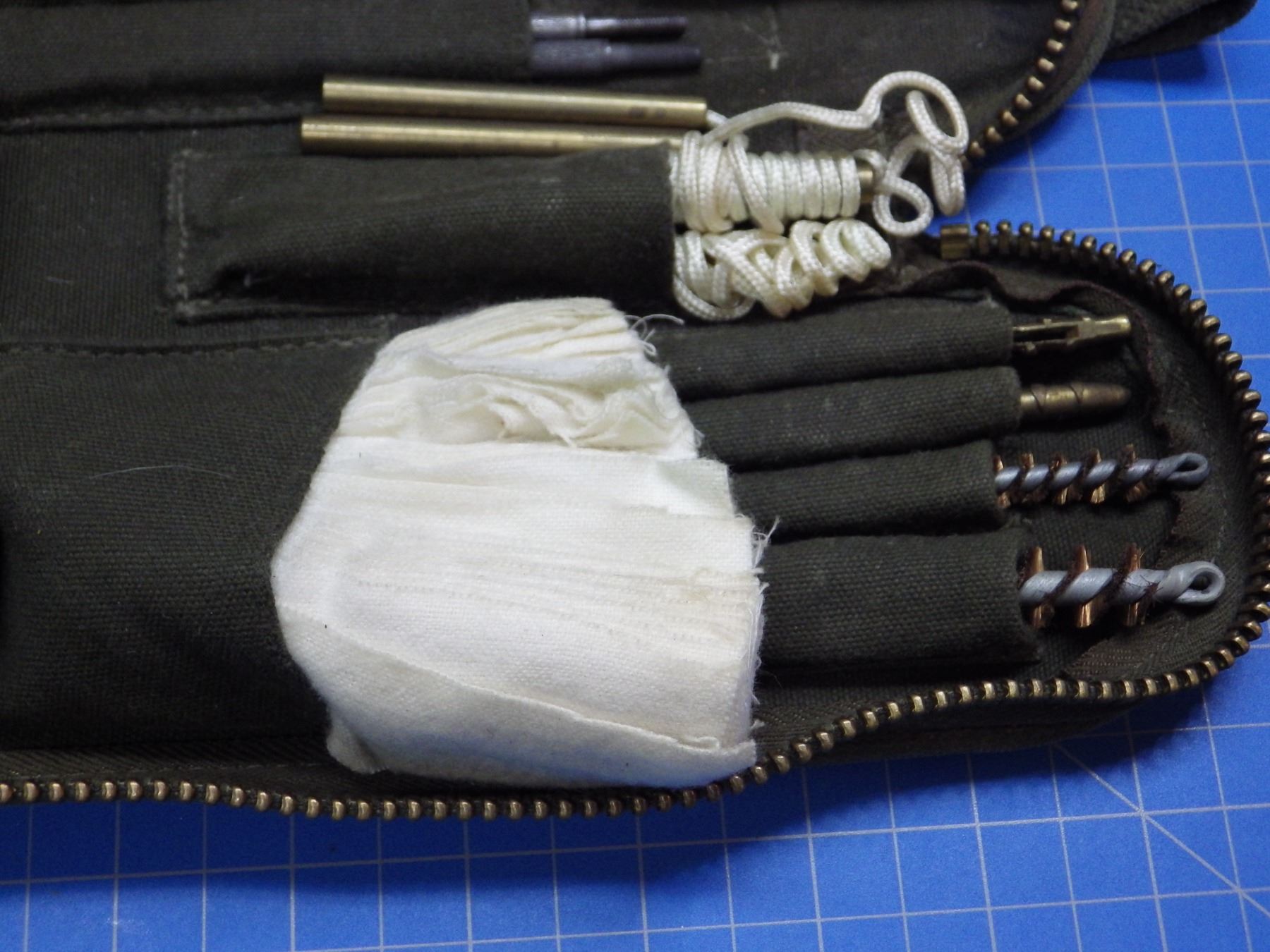 Canvas cased gun cleaning kit. Zipper marked " LIGHTNING "