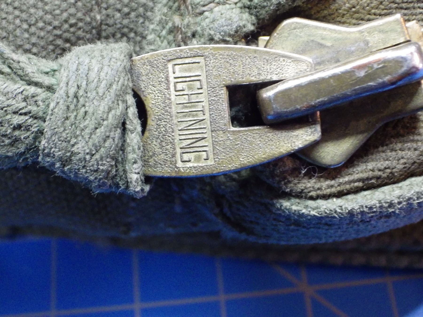 Canvas cased gun cleaning kit. Zipper marked " LIGHTNING "