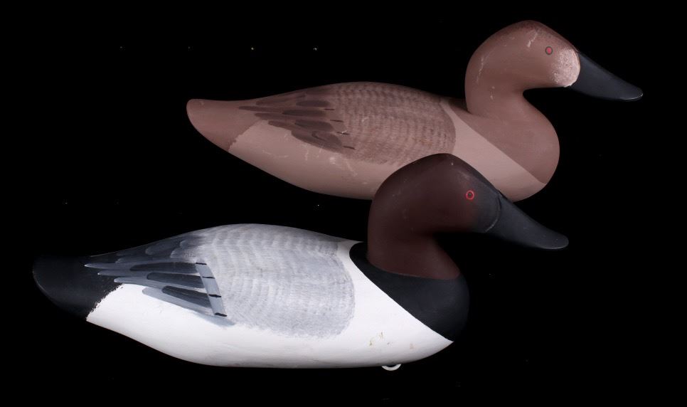 For your consideration is a Canvasback Pair by Patrick Vincenti. Patrick Vincenti is a carver out of Havre de Grace, Maryland. Vincenti's decoys are hand crafted in the Chesapeake Bay style. He became a full time decoy maker in 1986. His work has been displayed at the Smithsonian Institute in Washington D.C. and their decoys have been purchased and sold at many Ducks Unlimited functions across the United States. This pair of Canvasback decoys is a wonderful display of the craftsmanship by Vincenti. The paint on this pair is in good condition.