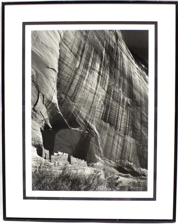 Framed Canyon de Chelly Monument River Print by Ansel Adams, visual measures 10'' x 14'', framed measurement of 19'' x 15.5'', double matted