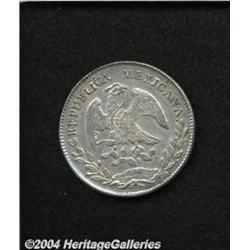 <B>Cap & Ray 8 Reales 1880/70 Do-TB/JP,</B></I> KM-377.4, Choice AU. <BR><BR><B>Important notice:</B> Heritage usually auctions material at the rate of 200-250 lots per hour. On some occasions eBay Live bid software or the Internet may not be able to keep up with the pace of the auction. We recommend placing a realistic absentee bid now as insurance to avoid disappointment. Occasionally the auctioneer may eliminate or reject an eBay Live bid, and the auctioneer may also reopen a lot after the close of the eBay live bidding (usually because we missed an audience bid), and may reject your bid even if it shows you as the winning bidder. By bidding via eBay Live, you agree that Heritage may award the lot to another bidder at its sole discretion under the circumstances described above or any other reasonable circumstances. Since eBay bids are not shown to us until we open the lot on the floor, we treat those bids just like floor bids. In most cases the floor responds before the eBay bid is presented to us, due to Internet lag time, so for consistency we have made it a policy that floor bids are always considered first over tie eBay live bids. Also please note that all Heritage lots purchased through eBay Live carry a 20% Buyer's Premium. Please make sure you read the Terms and Conditions before you bid.