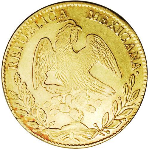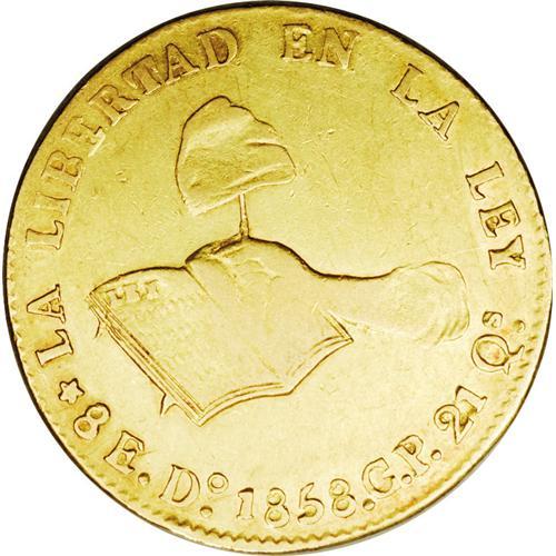 <B>Hand on Book gold 8 Escudos 1858 Do-CP,</B></I> KM383.3, VF and a scarce issue.