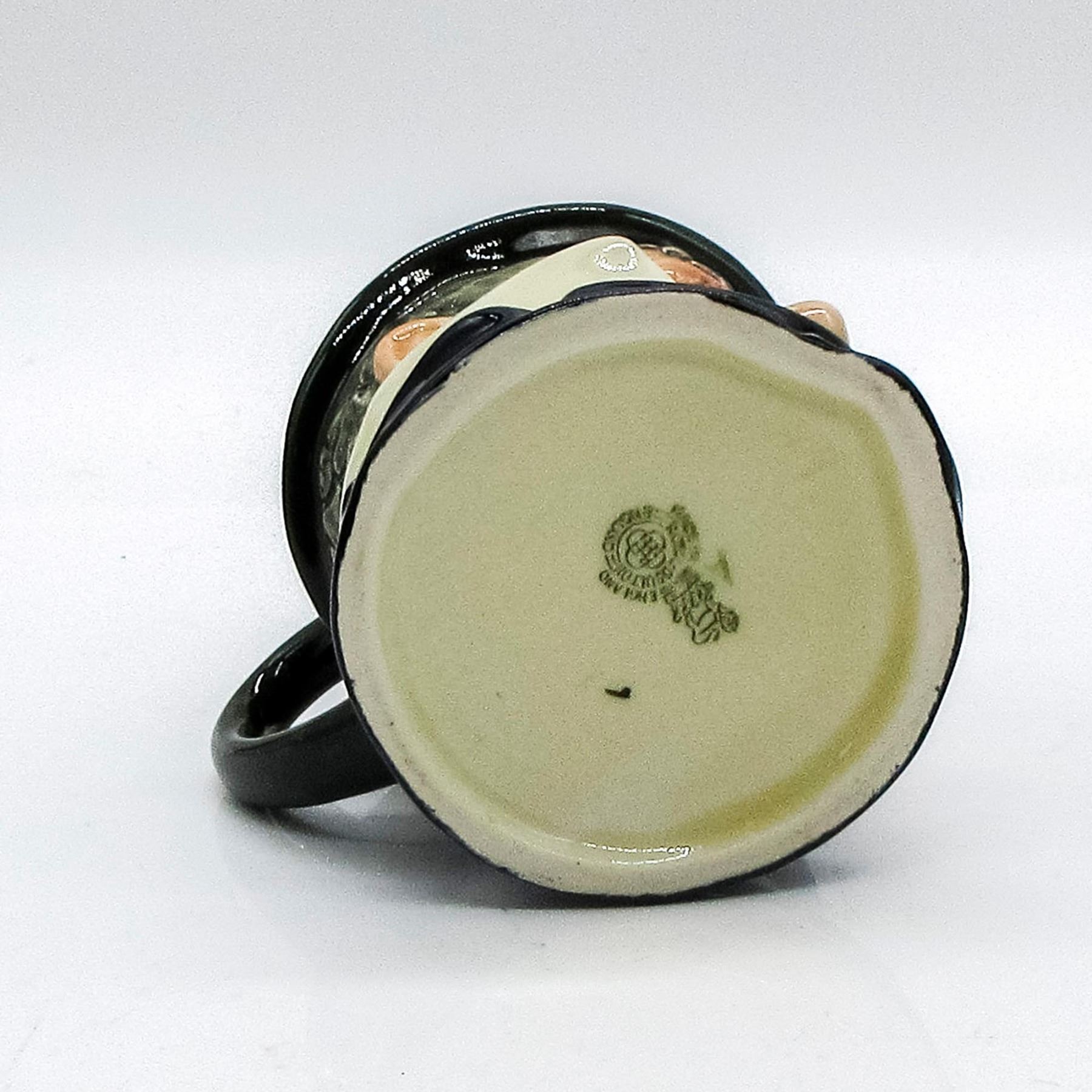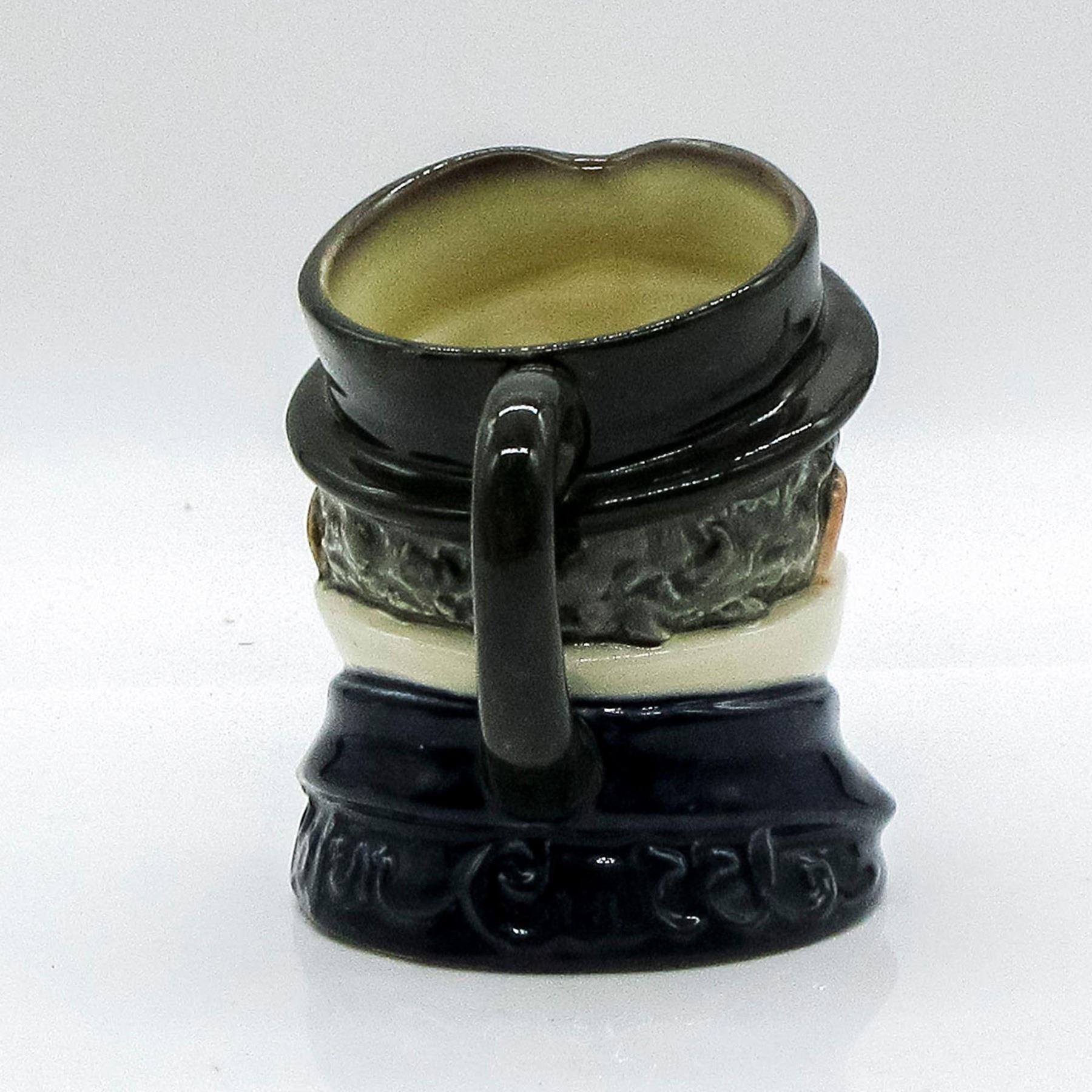 Blue-black coat, light blue collar; grey-green hat; white collar; red bow tie. The wonderful characters of Dickens' novels were the inspiration for many early jug designs. Captain Edward Cuttle was an eccentric English gentleman in "Dombey and Son" (1846), who is best known for saying "When found, make a note of it. Royal Doulton backstamp.