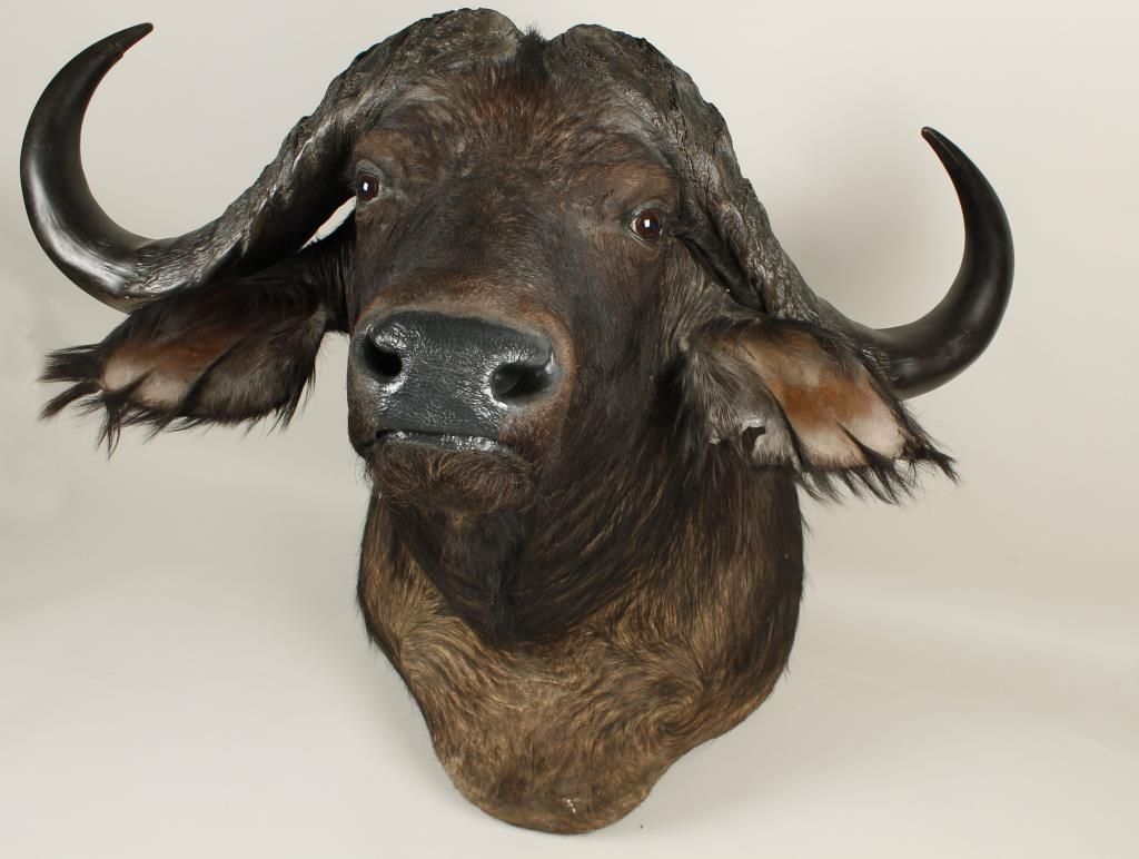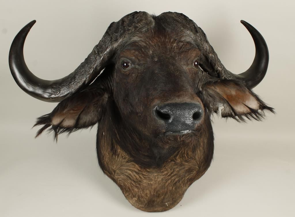 Taken in Lower Lupandi, Zambabwe in 1994. Approx measurements are as follows: Overall height including horns: 34"; Widest point at ears: 28"; Back to Nose tip: 44"; Crown to Left horn tip: 18"; Crown to Right horn tip: 18"; Horn tip width: 33". "Tony DaCosta Collection" of noted hunter and owner of Safari Headquarters Ltd. from Carson City, NV.