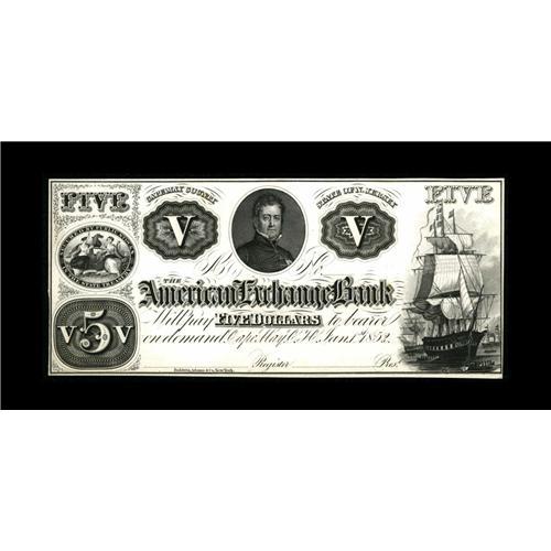 <B>Cape May C.H. Court House , NJ- American Exchange Bank</B></I> $5 Jan. 1, 1852 G8<BR>A second Proof example from this bank, which is the only way one can obtain any example from here, as no non-Proof examples from here are known. <B>Uncirculated,</B></I> ex-ABNCo sale, and mounted on a card.<BR><BR><b>Shipping:</b> Coin/Currency (<a target="_blank" href="http://www.heritageauctions.com/common/shipping.php">view shipping information</a>)