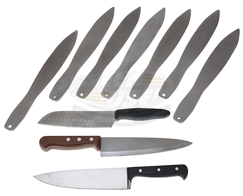 (NBC, 2011) This collection of ten prop knives were acquired by the production for use by various actors during filming of the series. The knives are made of rubber for stunt work and have minor wear from use. Each knife measures approximately 13" in length.