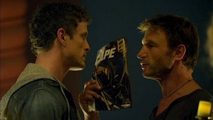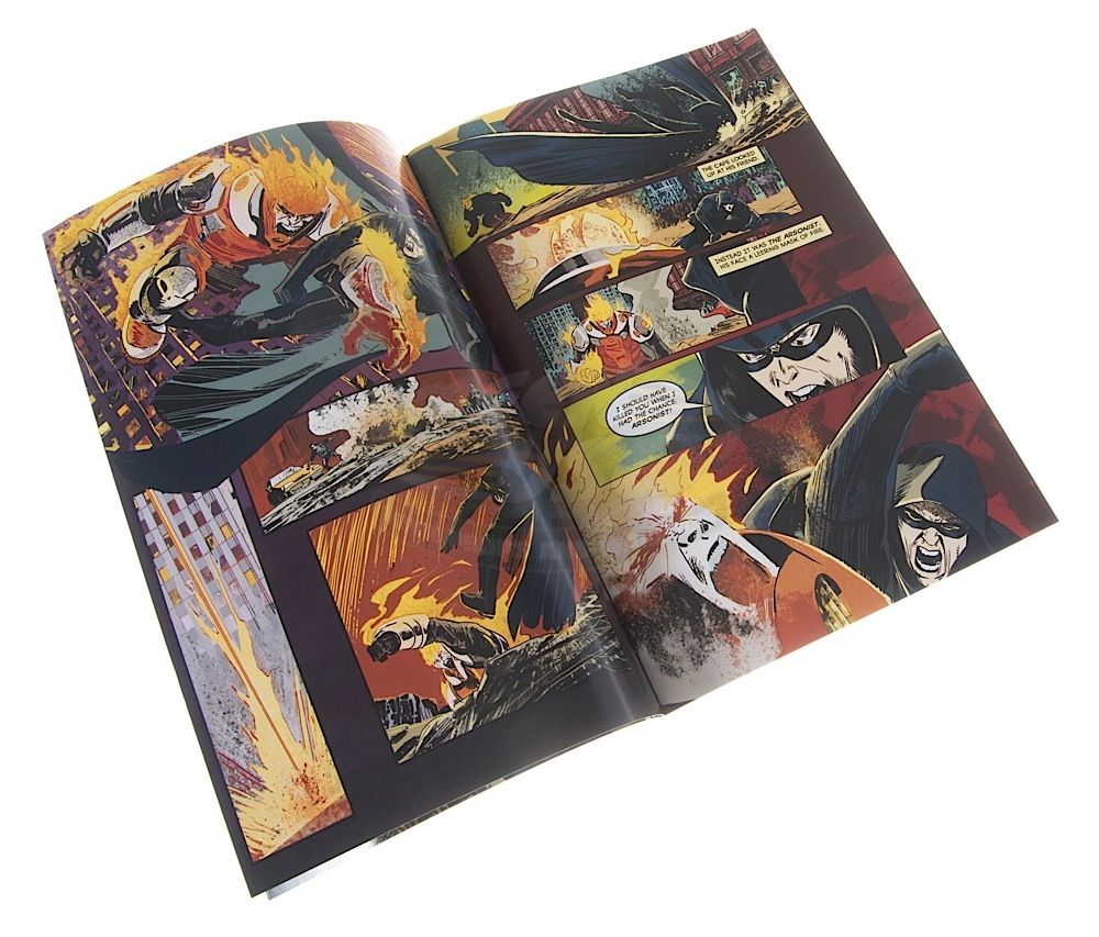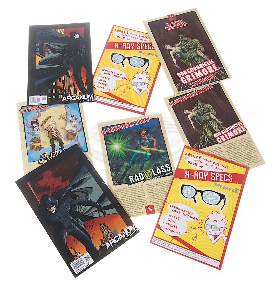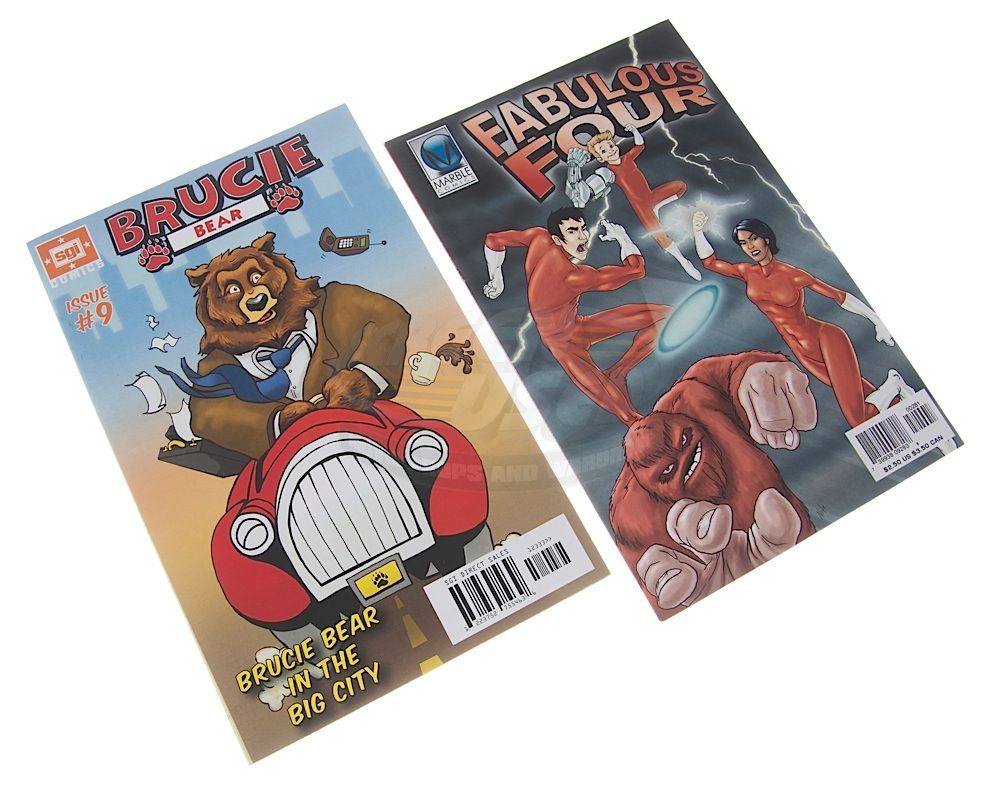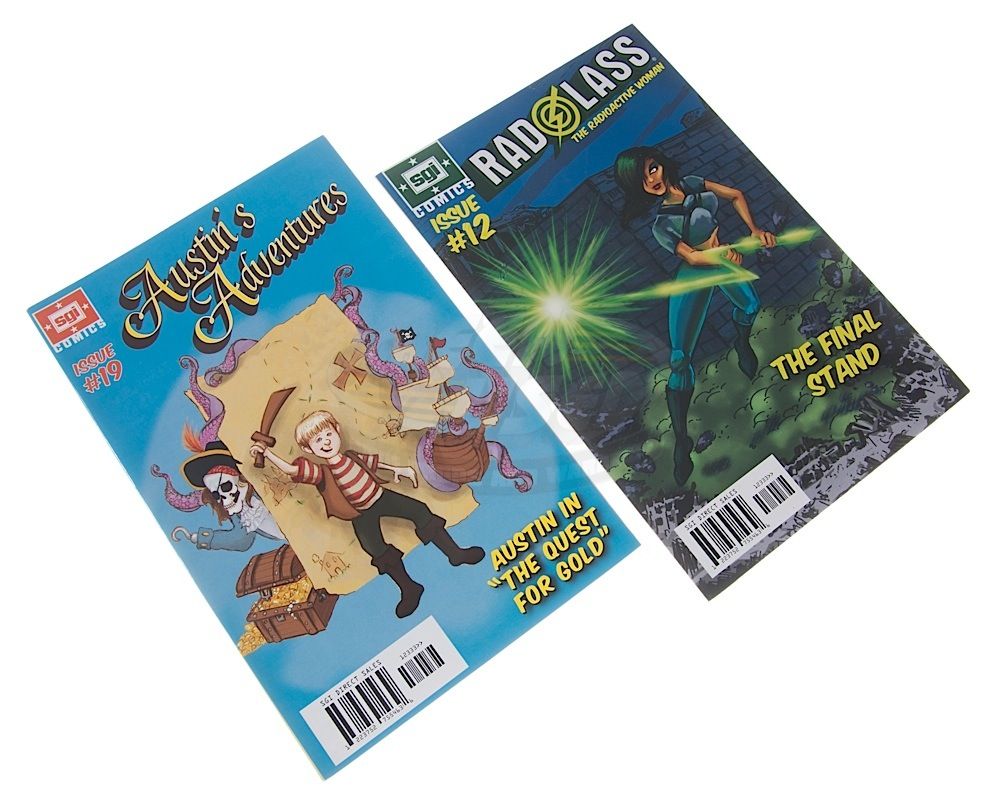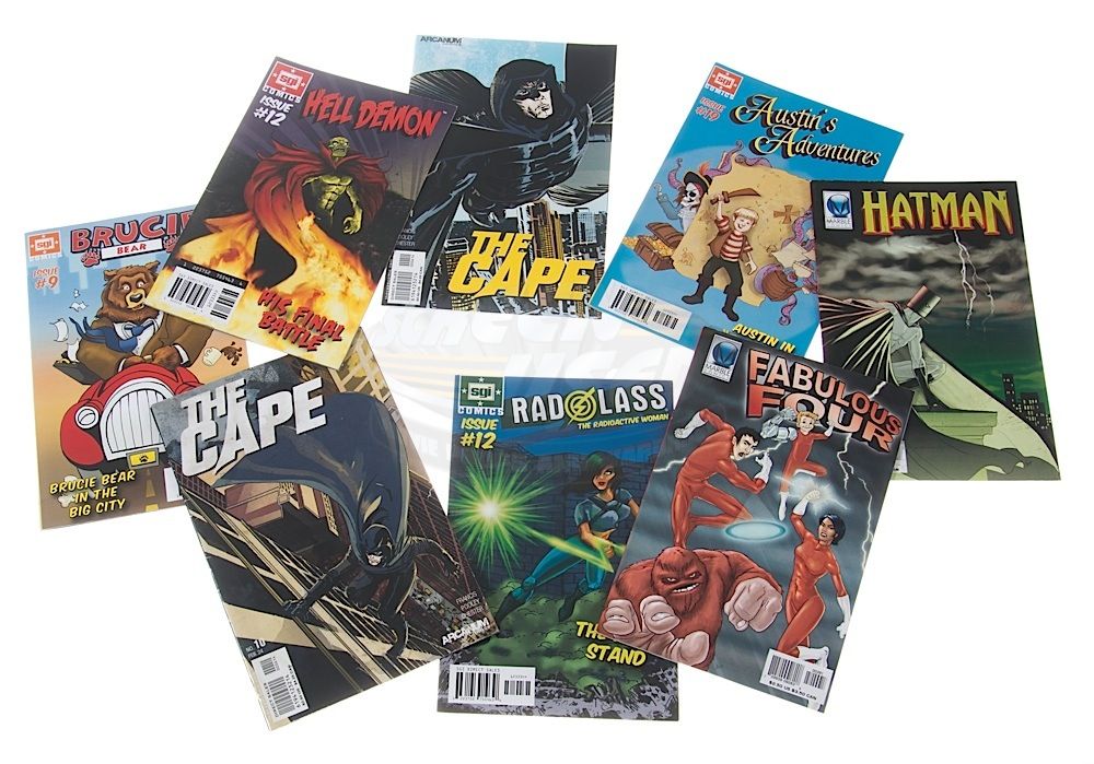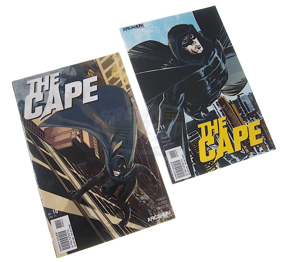 (NBC, 2011) This set of eight prop comic books were custom-printed by the production for use by various actors and as set dressing during the run of the series. The comic books include two "The Cape", one "Hatman", one "Hell Demon, one "Rad Lass", one "Austin's Adventures", one "Brucie Bear" and one "Fabulous Four". Minor wear from use is present, but the comics remain in good condition.