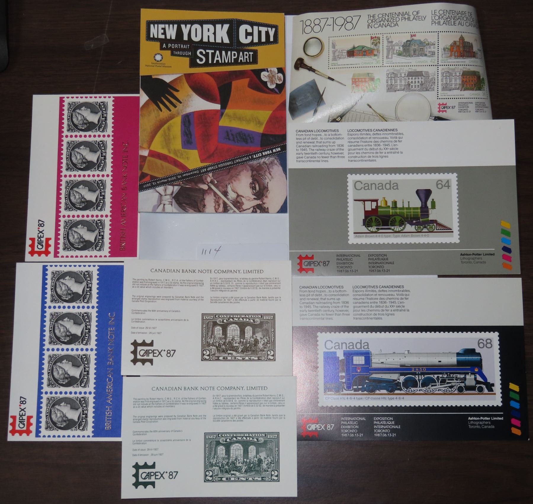 Capex 87 Souvenir Sheets 2 Anniversary Bank Note Co Cards, 2 Canadian Bank Note with Cards (Very Scarce)