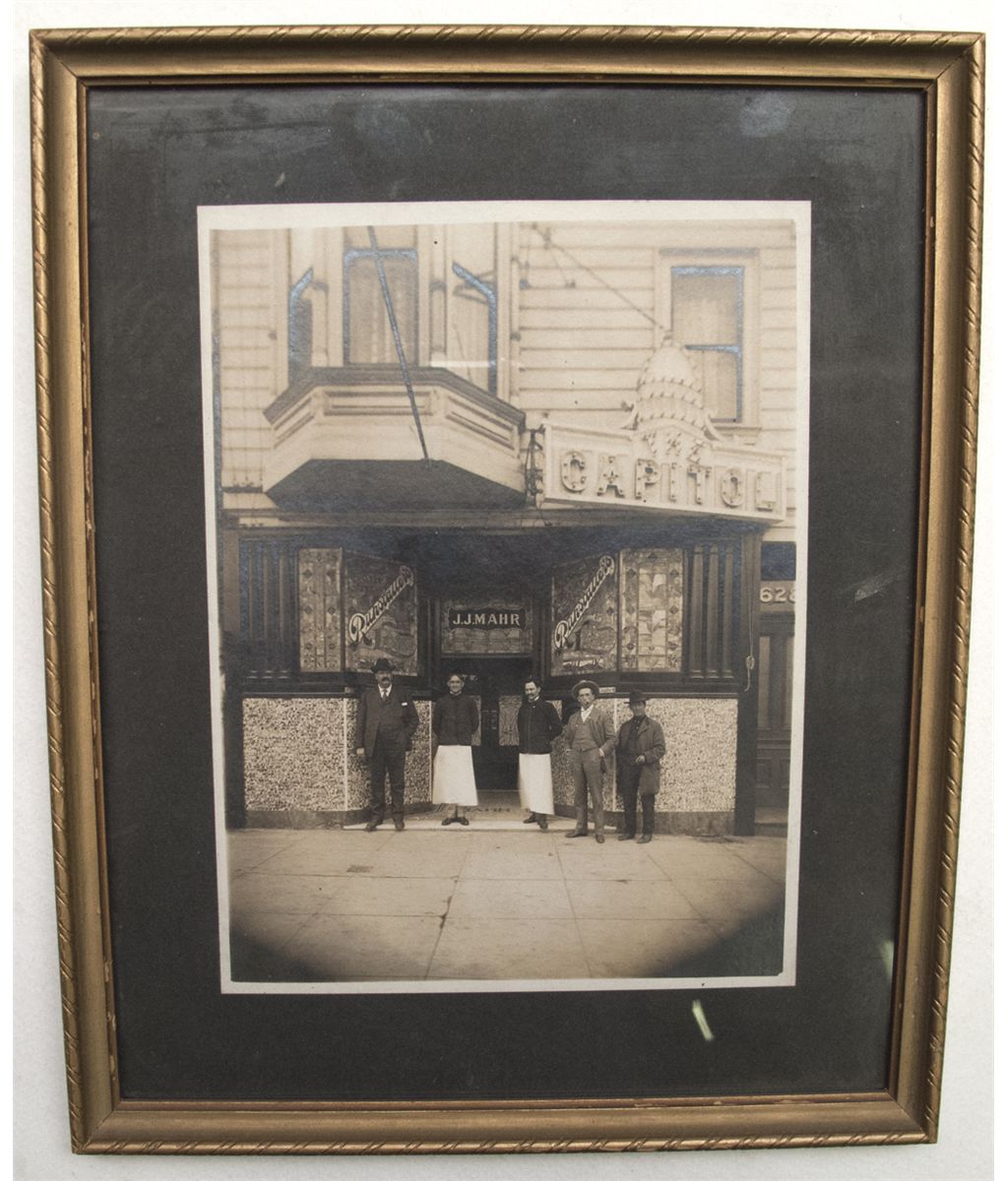 Operated by J. J. Mahr. Advertisement for Ruhstakker's - a Sacramento beer. New electric sign looks like it has been recently added!