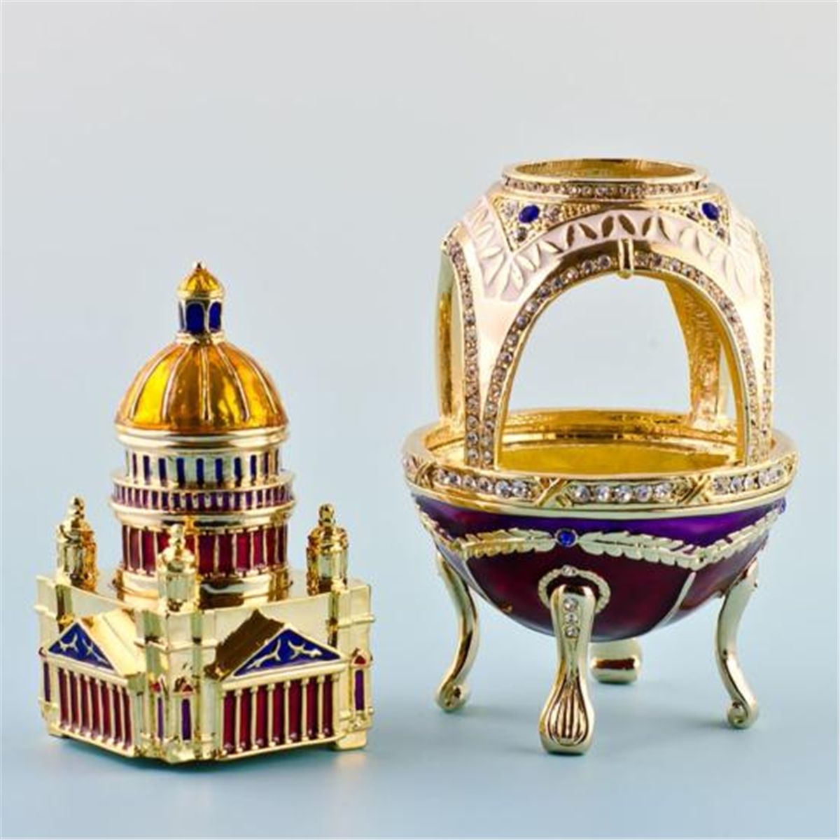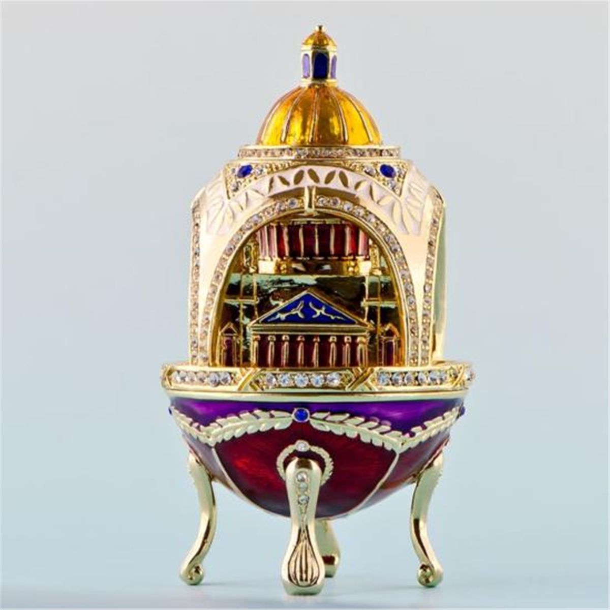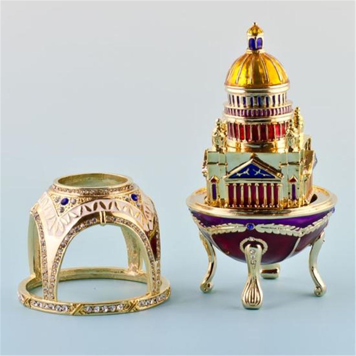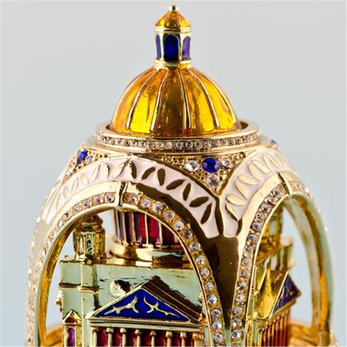 Capitol Faberge Style Egg, Dimensions: 4in (H) X 2in (D), Materials Pewter, Enamel, Crystals. The egg opens vertically.