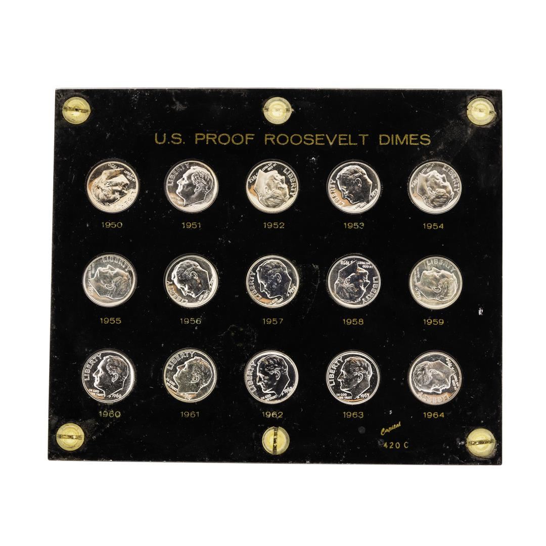 One Capitol Holder Set of (15) 1950-1964 Proof Roosevelt Dimes.