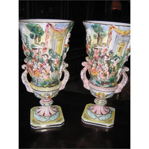 A nicely painted pr. of collectible Capo di Monte. Great for a mantel or center hall.</em></td>