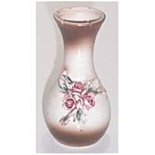 This is a lovely and authentic Capodimonte cream with brown trim vase, decorated with beautiful raised pink roses. It is marked with the original Neopolitan engraved crown over an 'N', It stands 4.5 in high and is in excellent condition.