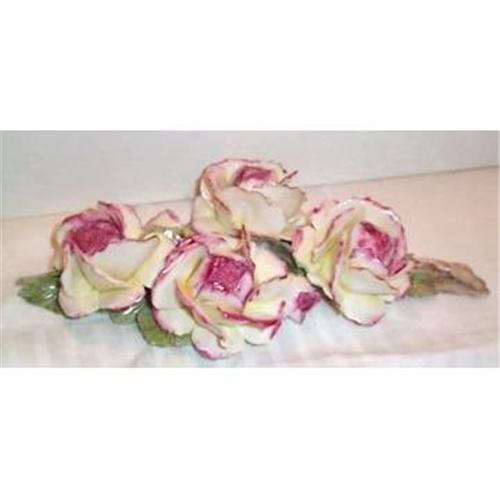 This fantastic Hand Painted Capodimonte Roses Figurine is in SUPERIOR conditioin with no chips, cracks, dings or hairlines. They figurine measures 11" long and is 5" wide and stand 2.50" tall. It is marked on the bottom with the familiar Capodimonte Logo as well as a paper label.
