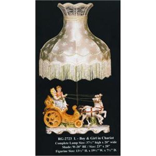 Capodimonte "Children in Carriage" porcelain lamp with shade Satisfaction Guaranteed All our capodimonte pieces are 100% authentic, made with the best craftmanship in Italy. Capodimonte is more than a century Italian style of the finest porcelain once reserved for kings and queens. The style became popular when the royal family in Italy fell in love with the beauty of Capodimonte arts. The selection you see is made by artisans, according to the same tradition dating back to the 18th Century.<BR>Free Shipping in the continental US