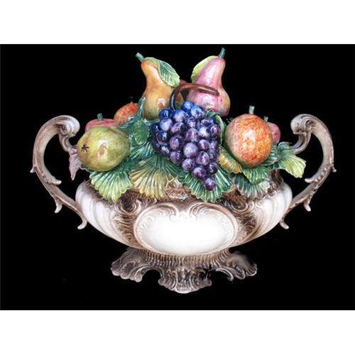 Capodimonte Fruit Basket Size: 15" high x 20" wide Satisfaction Guaranteed All our capodimonte pieces are 100% authentic, made with the best craftmanship in Italy. Capodimonte is more than a century Italian style of the finest porcelain once reserved for kings and queens. The style became popular when the royal family in Italy fell in love with the beauty of Capodimonte arts. The selection you see is made by artisans, according to the same tradition dating back to the 18th Century.<BR>Free Shipping in the continental US