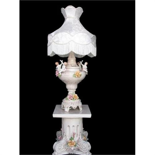 Capodimonte Lamp w/Table Size: 59" high x 18" wide Satisfaction Guaranteed All our capodimonte pieces are 100% authentic, made with the best craftmanship in Italy. Capodimonte is more than a century Italian style of the finest porcelain once reserved for kings and queens. The style became popular when the royal family in Italy fell in love with the beauty of Capodimonte arts. The selection you see is made by artisans, according to the same tradition dating back to the 18th Century.<BR>Free Shipping in the continental US