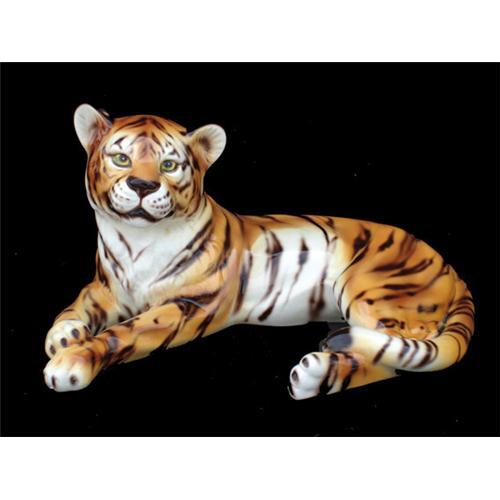 Capodimonte Laying Striped Panther Size: 10" high x 19" wide Satisfaction Guaranteed All our capodimonte pieces are 100% authentic, made with the best craftmanship in Italy. Capodimonte is more than a century Italian style of the finest porcelain once reserved for kings and queens. The style became popular when the royal family in Italy fell in love with the beauty of Capodimonte arts. The selection you see is made by artisans, according to the same tradition dating back to the 18th Century.<BR>Free Shipping in the continental US