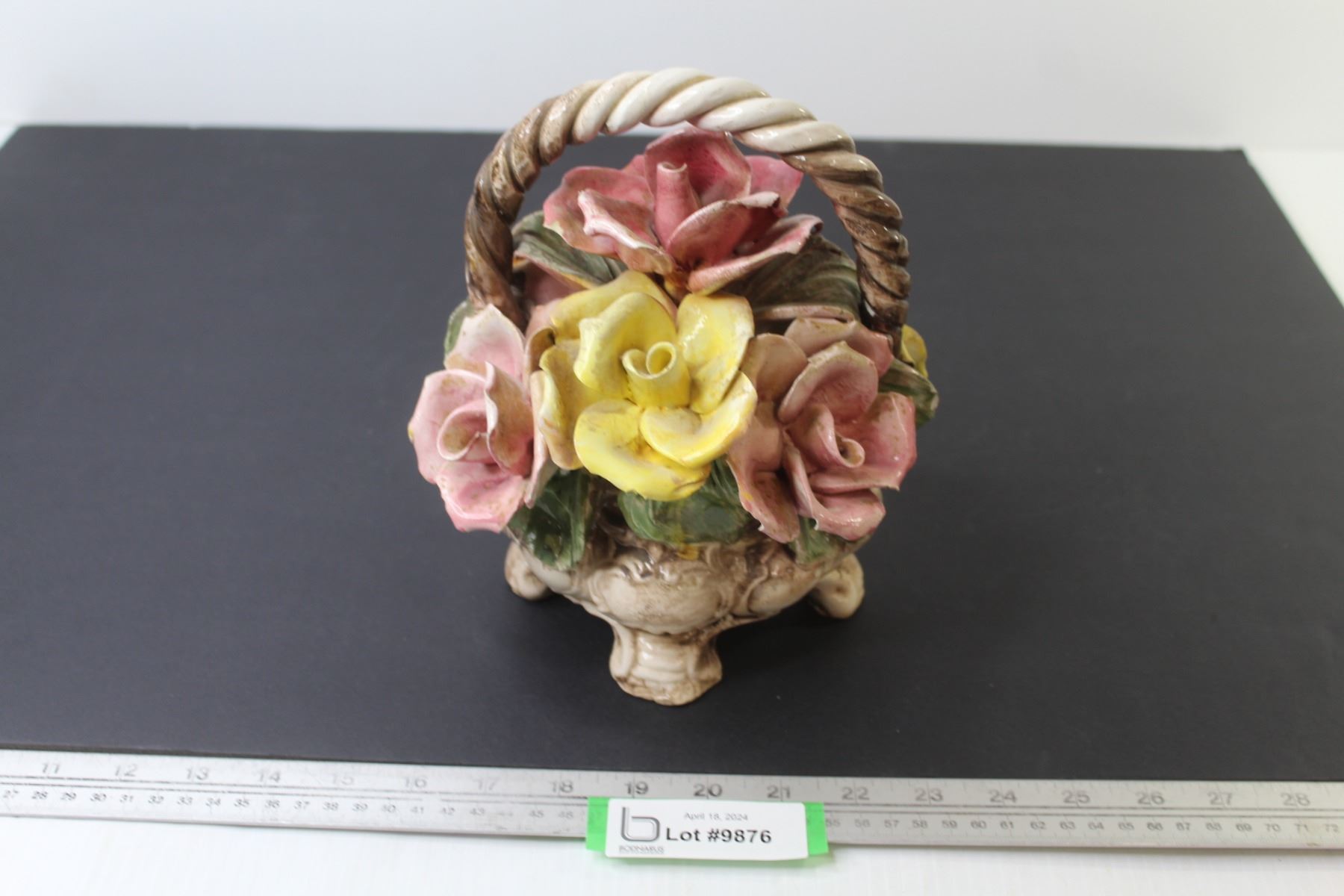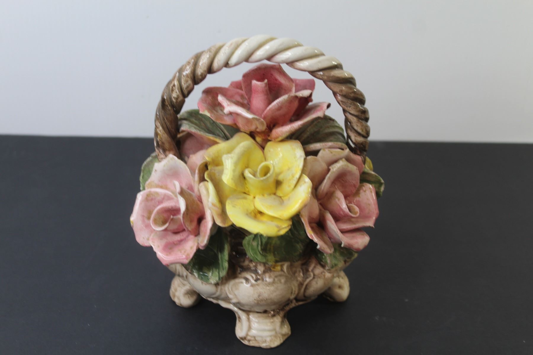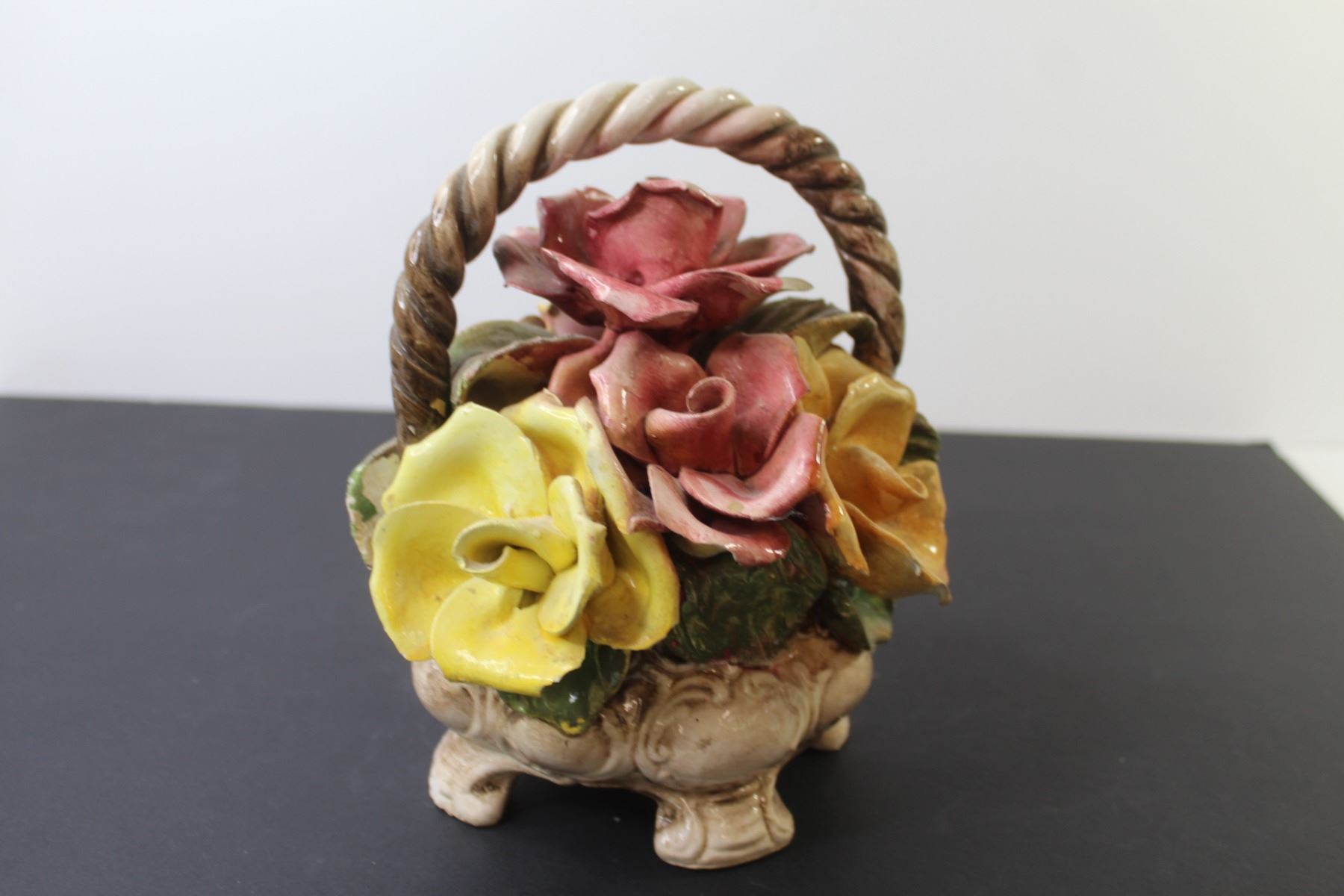 Capodimonte Made In Italy Ceramic Basket of Flowers With Handle