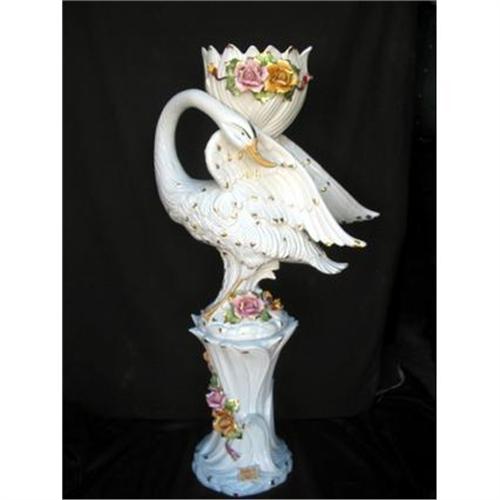 Capodimonte Pedestal Swan Size: 42" high x 21" wide Satisfaction Guaranteed All our capodimonte pieces are 100% authentic, made with the best craftmanship in Italy. Capodimonte is more than a century Italian style of the finest porcelain once reserved for kings and queens. The style became popular when the royal family in Italy fell in love with the beauty of Capodimonte arts. The selection you see is made by artisans, according to the same tradition dating back to the 18th Century.<BR>Free Shipping in the continental US