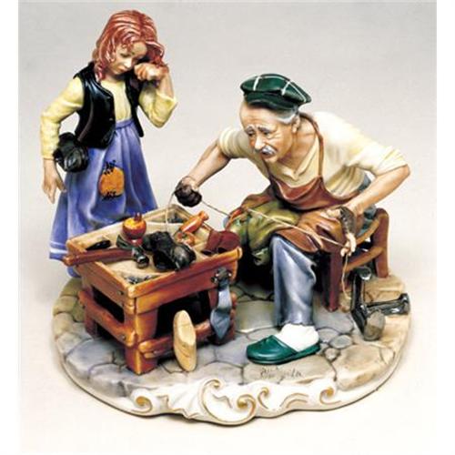 "Shoemaker with Little Girl" by Enzo Arzenton Size: 9" high x 9.5" wide Satisfaction Guaranteed All our capodimonte pieces are 100% authentic, made with the best craftmanship in Italy. Capodimonte is more than a century Italian style of the finest porcelain once reserved for kings and queens. The style became popular when the royal family in Italy fell in love with the beauty of Capodimonte arts. The selection you see is made by artisans, according to the same tradition dating back to the 18th Century.<BR>Free Shipping in the continental US