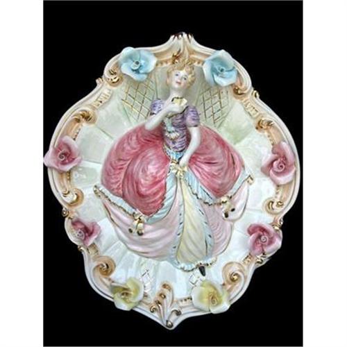 Capodimonte Victorian Plaque Size: 20" high x 17" wide Satisfaction Guaranteed All our capodimonte pieces are 100% authentic, made with the best craftmanship in Italy. Capodimonte is more than a century Italian style of the finest porcelain once reserved for kings and queens. The style became popular when the royal family in Italy fell in love with the beauty of Capodimonte arts. The selection you see is made by artisans, according to the same tradition dating back to the 18th Century.<BR>Free Shipping in the continental US