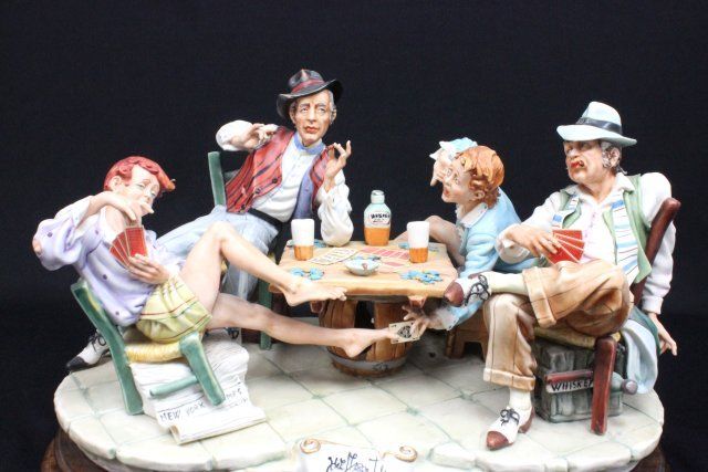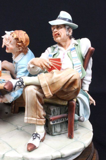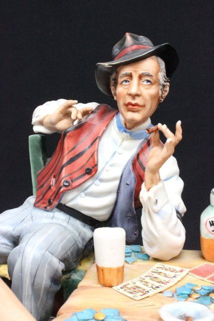 Nick on hat. Approx. 19" W on wood base x 10" D x 10.5" H.