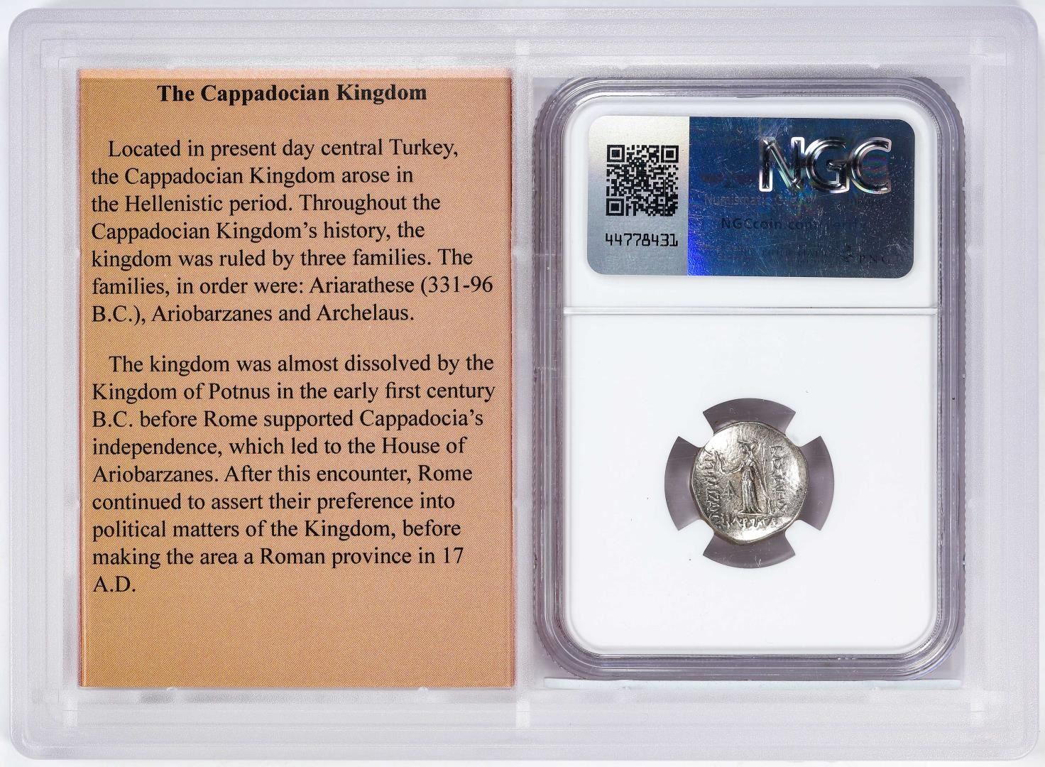 Cappadocian Kingdom c.96-63 BC Ariobarzanes I AR Drachm Ancient Coin NGC VF Story Box