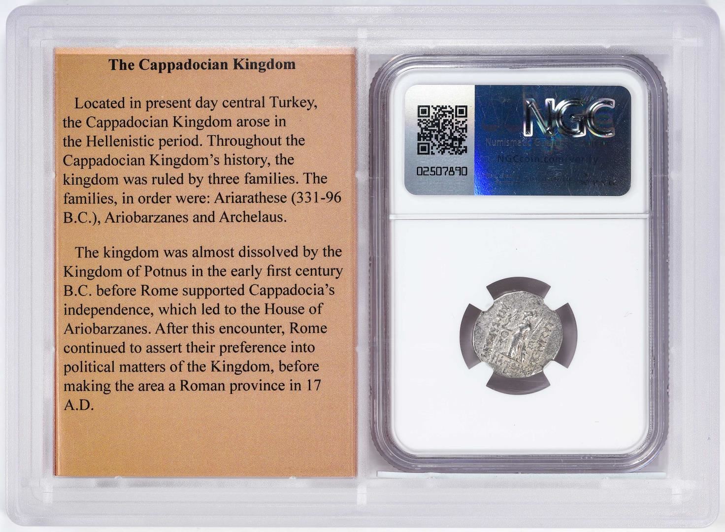 Cappadocian Kingdom c.96-63 BC Ariobarzanes I AR Drachm Ancient Coin NGC VF Story Box