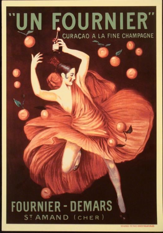Don't you wish life could be free flowing and easy going like this?? Artist: Leonetto Cappiello Title: "Un Fonrnier" - Curacao A La Fine Champagne Medium: Serigraph postcard print Date: 1999 Printed by Marco Fine Arts Image Size: 10 7/8 x 15 7/8 inches Paper Size: 11 5/8 x 16 3/4 inches Condition: Very good BibliographyLeonetto Cappiello (April 9, 1875 in Livorno, Italy - February 2, 1942 in Cannes, France) was an Italian poster art designer who lived in Paris. He is now often called 'the father of modern advertising' because of his innovation in poster design. The early advertising poster was characterized by a painterly quality as evidenced by early poster artists Jules Chéret, Alfred Choubrac and Hugo D'Alesi. Cappiello, like other young artists, worked in way that was almost the opposite of his predecessors. He was the first poster artist to use bold figures popping out of black backgrounds, a startling contrast to the posters early norm.From website: http://en.wikipedia.org/wiki/Leonetto_Cappiello