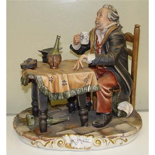 Signed and hallmarked Cappodimonte ceramic sculpture colorfully depicting a weary minstrel
