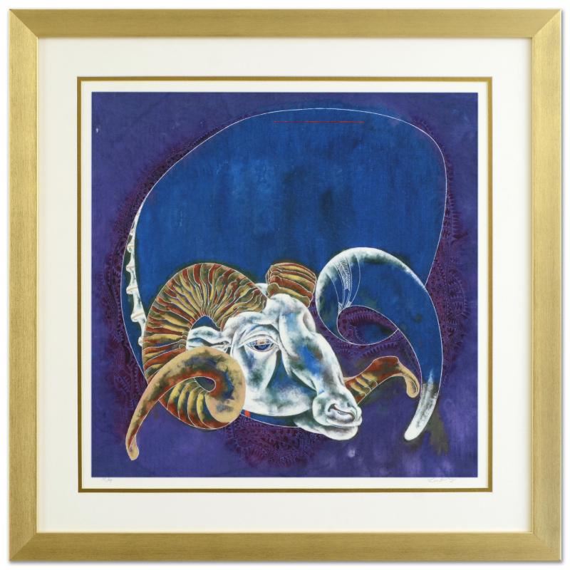 The zodiac is a phenomenological study, formed by coordination between 12 specific constellations in space and birth of one specific human being in time, contrasting 12 signs that guide the meditation of love, fate and purpose of one's life. "Capricorn (12/22 - 1/20)" is a limited edition giclee on paper by talented Chinese artist Lu Hong, numbered and hand signed by the artist! This piece comes custom framed. Measures approx. 28" x 28" (with frame), 20" x 20" (image).