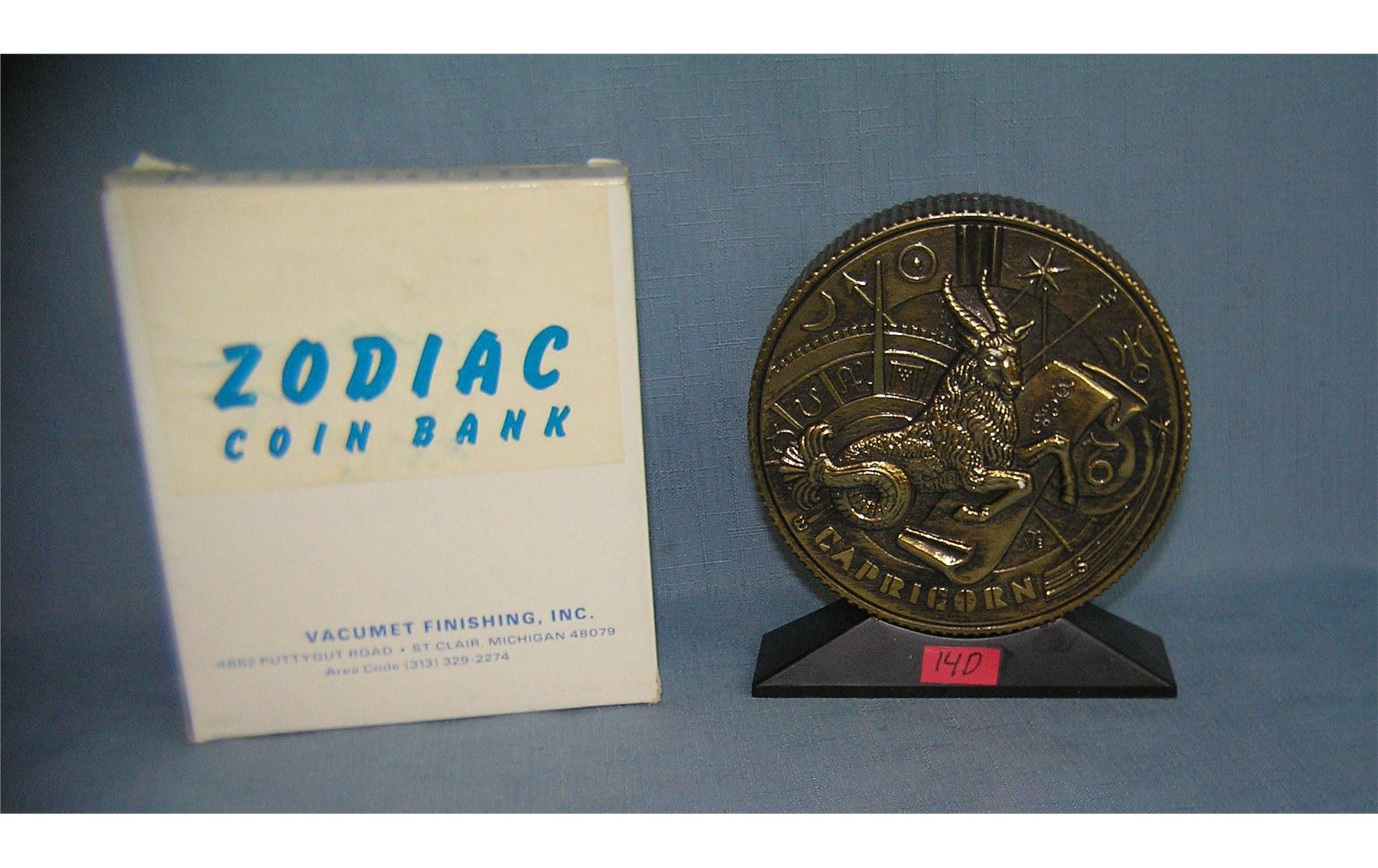 Capricorn all cast metal Zodiac bank with original box est. value $75.00-$80.00