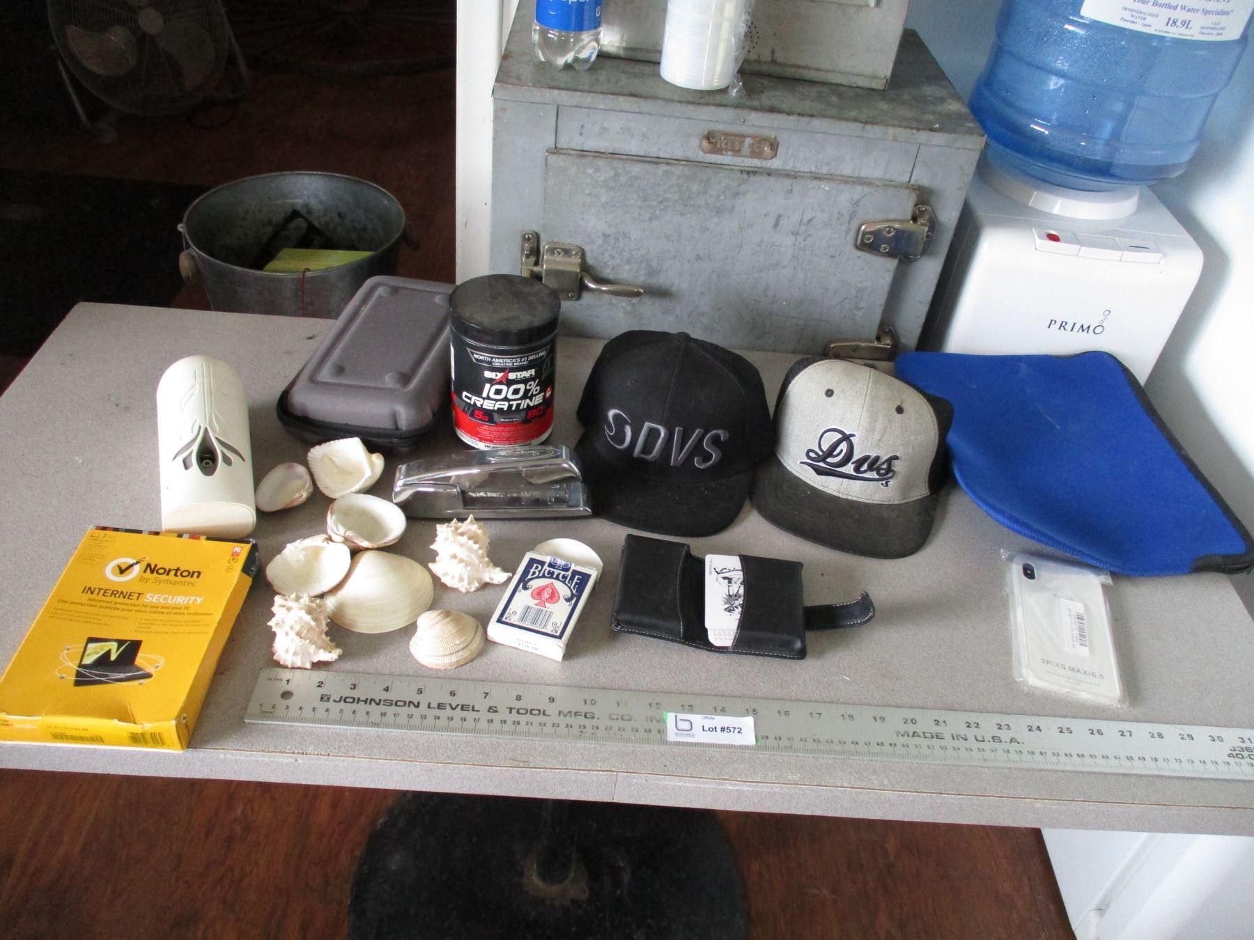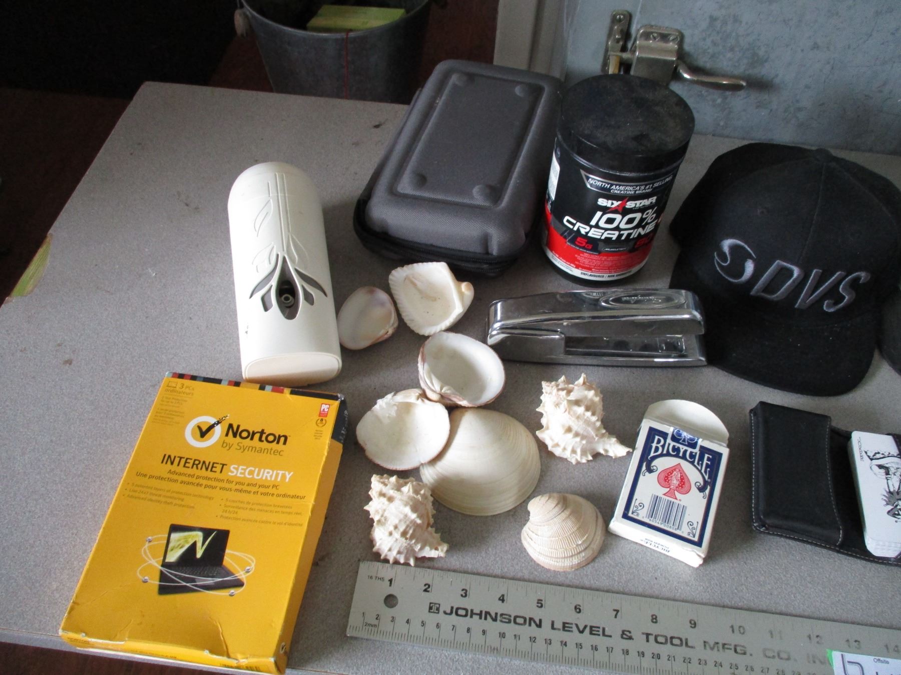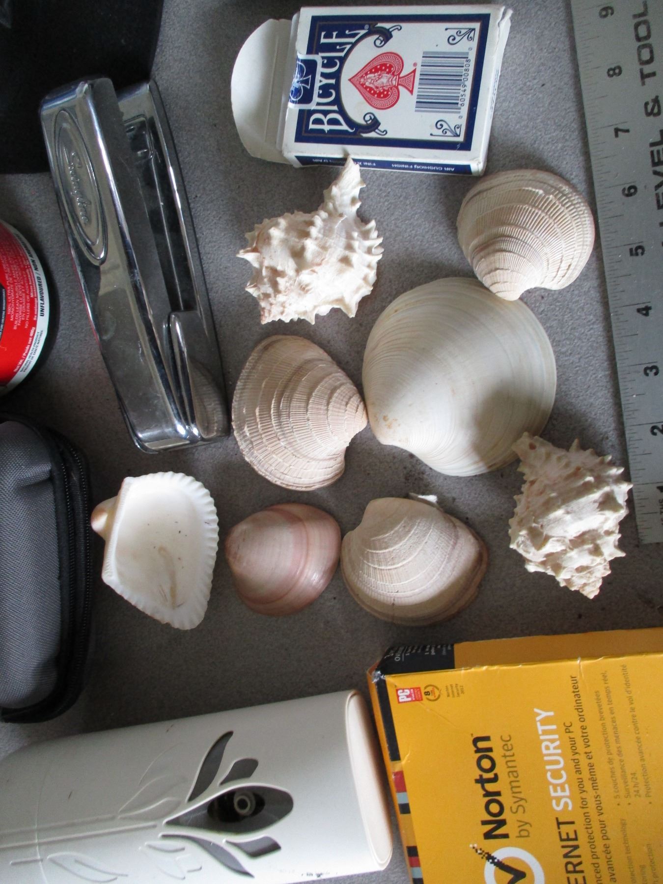 Caps, playing cards, shell collection