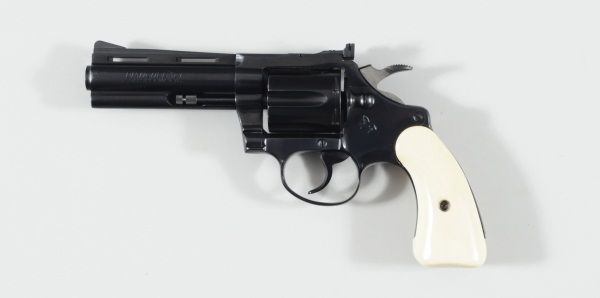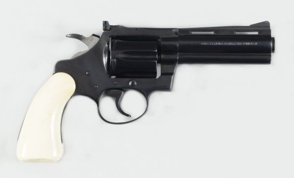 4'' Barrel, blue finish with extended ivory grips. Serial # - D62636