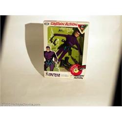 Captain Action: The Phantom Uniform Set (Ideal, 1966). Always a popular favorite, especially since there was never much merchandise created for Lee Falk's mysterious jungle crime fighter. Factory-sealed, this is the rare 1967 re-issue with the stereo-vision ring included. Box is C8, has a small tear below the "c" in Captain, and a bump in the upper right corner. Important notice: We expect to be auctioning lots at the rate of 200-250 per hour. Sometimes eBay Premier live bid software cannot keep up with that pace, so we strongly recommend that you place a realistic proxy bid now as insurance to avoid disappointment. Also please note that all Heritage/CAA lots purchased through eBay Premier carry a 20% Buyer's Premium. Please make sure you read the Terms and Conditions.