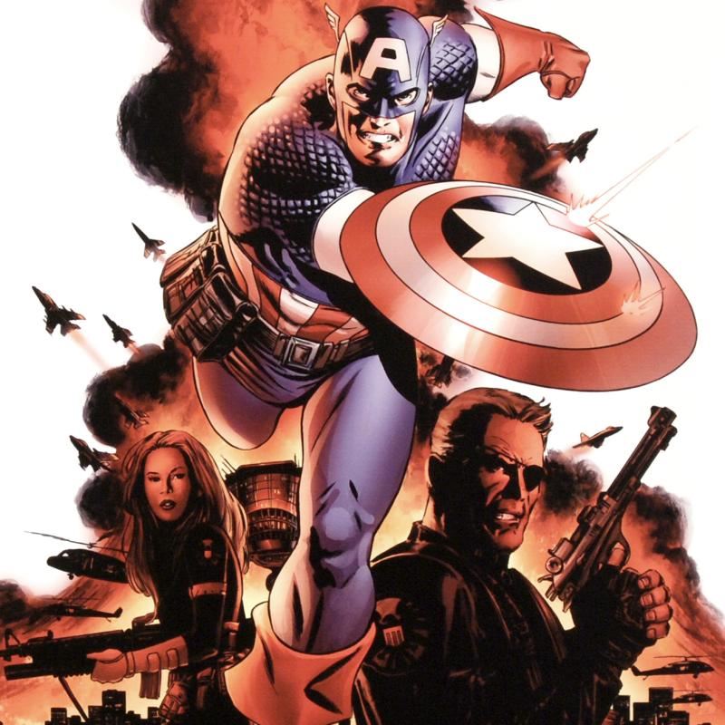 A piece of comic book history, this limited edition, from original art by Steve Epting, depicts an action packed scenes starring Captain America, Nick Fury and Black Widow. Steve Epting began working with Marvel Comics in the early 1990s; his first assignment was a six part Avengers series, thereafter he became a full time penciler on the Avengers. More recently Epting has been working on the Fantastic Four as well as Captain America. "Captain America #1" is a limited edition giclee on canvas by Steve Epting presented by Marvel Comics, numbered and hand signed by the great Stan Lee! Includes Certificate of Authenticity! Measures approx. 18" x 27" (image).