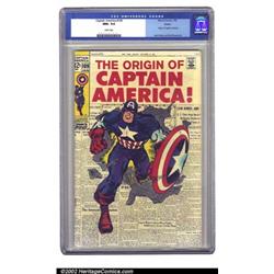 Captain America #109 Boston pedigree (Marvel, 1969) CGC NM+ 9.6 White pages. This issue features the classic "newspaper" cover and interior art by Jack Kirby which retells the origin of Captain America. This comic just looks good, and this particular copy will make a great addition to any collection. Overstreet 2002 NM 9.4 value = $80. Important notice: We expect to be auctioning lots at the rate of 200-250 per hour. Sometimes eBay Premier live bid software cannot keep up with that pace, so we strongly recommend that you place a realistic proxy bid now as insurance to avoid disappointment. Also please note that all Heritage/CAA lots purchased through eBay Premier carry a 20% Buyer's Premium. Please make sure you read the Terms and Conditions.