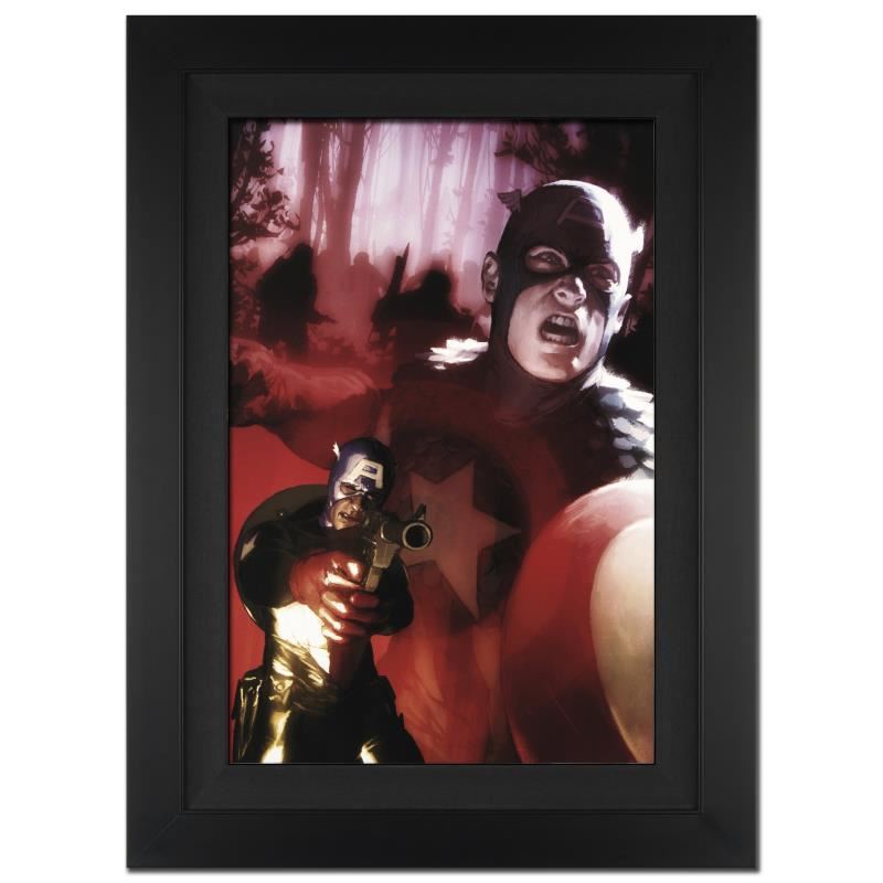 A piece of comic book history, this limited edition piece from art originally drawn by Gerald Parel, depicts the heroic Captain America. Gerald Parel has done many covers for Marvel Comics, including "Iron Man", "Captain America", "Marvels Project" and "S.H.I.E.L.D." "Captain America #603" is an extremely limited edition giclee on canvas by Gerald Parel presented by Marvel Comics, hand signed by the great Stan Lee and numbered out of only 10! This piece comes custom framed and ready to hang. This piece comes custom framed and ready to hang. Includes Certificate of Authenticity! Measures approx. 25" x 34" (with frame), 18" x 27" (image).