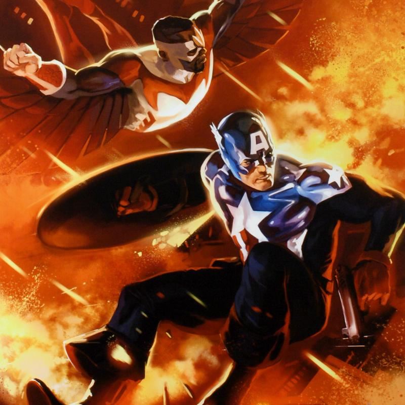 A piece of comic book history, this limited edition, from original art by Marko Djurdjevic, depicts a heroic Captain America accompanied by Falcon. Marko Djurdjevic was discovered by Marvel after posting a series of re-designs for popular X-Men characters. Marvel then offered Djurdjevic the opportunity to draw covers for some of their popular series, like Spider-Man, Daredevil, and Thor. "Captain America #607" is a limited edition giclee on canvas by Marko Djurdjevic presented by Marvel Comics, numbered and hand signed by the great Stan Lee! Includes Certificate of Authenticity! Measures approx. 18" x 27" (image).
