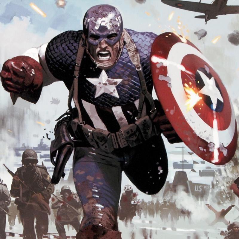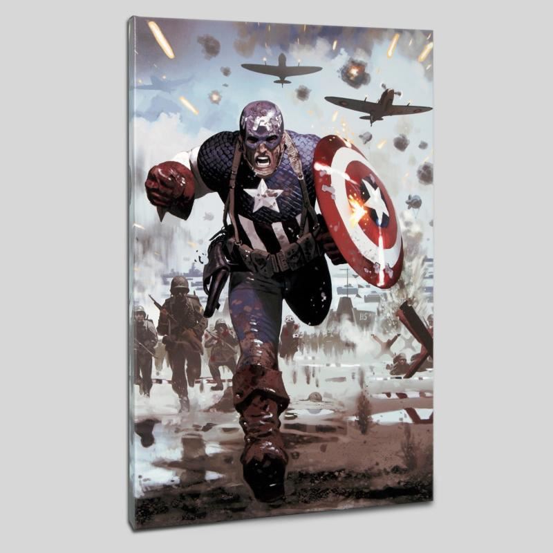 A piece of comic book history, this limited edition, from original art by Daniel Acuna, depicts the heroic Captain America. Spanish artist Daniel Acuna cites artists like Jack Kirby and Simon Bisley as his early artist influences. After doing some occasional cover art for Marvel, Acuna signed an exclusive contract with Marvel in 2007. "Captain America #615" is a limited edition numbered giclee on canvas by Daniel Acuna presented by Marvel Comics. This piece comes gallery wrapped! Includes Certificate of Authenticity! Measure approx. 18" x 27" (image).