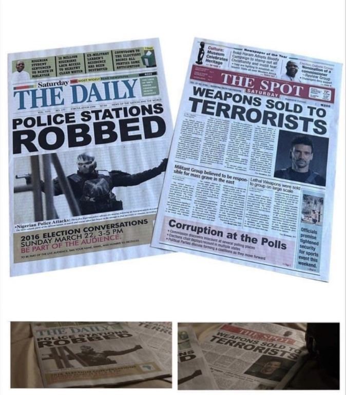 Original set of two news article papers made for the production of the Anthony and Joe Russo directed superhero film 'Captain America: Civil War' (2016), where a disagreement over international oversight of the Avengers fractures the team into two opposing factions, one led by Steve Rogers and the other by Tony Stark (Downey).