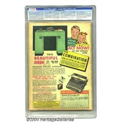 <B>Captain America Comics #1 (Timely, 1941) CGC VG+ 4.5 Cream to off-white pages.</B></I> Visionary comic creators Joe Simon and Jack Kirby tapped into the <I>zeitgeist</B></I> to produce the perfect hero for 1941: Captain America. He became one of the most beloved characters of all, that's why this comic is one of the most treasured of all. There was certainly plenty of evil afoot in '41, and the fiend behind most of it, one Adolf Hitler, gets a well deserved punch in the face on one of the most famous comic book covers ever. Two other pretty important characters made their debuts in the issue: the evil Red Skull, who would menace Cap for the remainder of the century, and Cap's loyal sidekick Bucky Barnes. Simon and Kirby drew the origin story, while the cover is a solo effort by Kirby. This unrestored copy has been read a few times in its day (who wouldn't read the great origin story over and over?), but it's very appealing overall, with very nice page quality and no major flaw that would detract from your enjoyment. You'll see what we mean when you look at the cover scan -- this is a copy any comic fan we've ever known would be ecstatic to have. Overstreet 2004 VG 4.0 value = $13,888. <BR><BR><B>Important notice:</B> Heritage usually auctions material at the rate of 200-250 lots per hour. On some occasions eBay Live bid software or the Internet may not be able to keep up with the pace of the auction. We recommend placing a realistic absentee bid now as insurance to avoid disappointment. Occasionally the auctioneer may eliminate or reject an eBay Live bid, and the auctioneer may also reopen a lot after the close of the eBay live bidding (usually because we missed an audience bid), and may reject your bid even if it shows you as the winning bidder. By bidding via eBay Live, you agree that Heritage may award the lot to another bidder at its sole discretion under the circumstances described above or any other reasonable circumstances. Since eBay bids are not shown to us until we open the lot on the floor, we treat those bids just like floor bids. In most cases the floor responds before the eBay bid is presented to us, due to Internet lag time, so for consistency we have made it a policy that floor bids are always considered first over tie eBay live bids. Also please note that all Heritage lots purchased through eBay Live carry a 20% Buyer's Premium. Please make sure you read the Terms and Conditions before you bid.