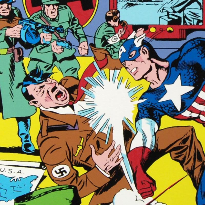 A piece of comic book history, this limited edition, from original art by Jack Kirby (1917-1994), depicts a classic Captain America cover. Jack Kirby, along with the legendary Stan Lee, is credited with creating some of Marvel Comics' most popular characters, like The Fantastic Four, The Hulk, and the X-Men. In 1987, Kirby was one of the three inaugural inductees of the Will Eisner Comic Book Hall of Fame. "Captain America Comics #1" is a limited edition giclee on canvas by Jack Kirby (1917-1994) presented by Marvel Comics, hand signed by the great Stan Lee and numbered out of only 10! This piece has been custom framed and ready to hang. Includes Certificate of Authenticity! Measures approx. 25" x 31" (with frame); 18" x 24" (image).