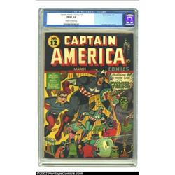 Captain America Comics #12 (Timely, 1942) CGC FN/VF 7.0 Cream to off-white pages. The title was blessed with most distinctive artists; Simon and Kirby, Alex Schomburg, Syd Shores, and, here, Al Avison with a bizarre rendering of "The Pygmies of Terror." An overall accumulation of minor defects keeps this from grading into a high-grade range, but then only one copy of issue #12 has managed to coax a higher grade from CGC, at Very Fine/Near Mint. A most attractive copy of one of the Golden Age's most beloved titles. Overstreet 2002 FN 6.0 value = $1,000; VF 8.0 value = $2,083. Important notice: We expect to be auctioning lots at the rate of 200-250 per hour. Sometimes eBay Premier live bid software cannot keep up with that pace, so we strongly recommend that you place a realistic proxy bid now as insurance to avoid disappointment. Also please note that all Heritage/CAA lots purchased through eBay Premier carry a 20% Buyer's Premium. Please make sure you read the Terms and Conditions.