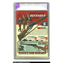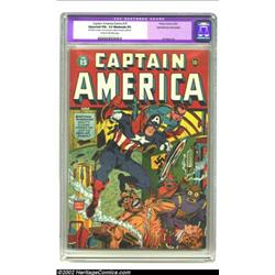 Captain America Comics #15 (Timely, 1942) CGC App. FN+ 6.5 Moderate (P) Cream to off-white pages. Al Avison pulls out all the stops on this enthralling cover; pretty lady in bondage, robots, Nazi torture specialists, the Den of Doom... oh,yeah, and Captain America and Bucky! Is it just us, or wasn't there a Den of Doom on just about every Timely cover in 1942? Among all unrestored copies of this issue that CGC has certified to date, only two copies display higher grades than the "Apparent" grade here. CGC notes "Restoration includes: color touch, pieces added, tear seals, reinforced." and also advises "Centerfold Detached." That just means you can have a great-looking book for mere alms. Overstreet 2002 FN 6.0 value = $1,000. Important notice: We expect to be auctioning lots at the rate of 200-250 per hour. Sometimes eBay Premier live bid software cannot keep up with that pace, so we strongly recommend that you place a realistic proxy bid now as insurance to avoid disappointment. Also please note that all Heritage/CAA lots purchased through eBay Premier carry a 20% Buyer's Premium. Please make sure you read the Terms and Conditions.