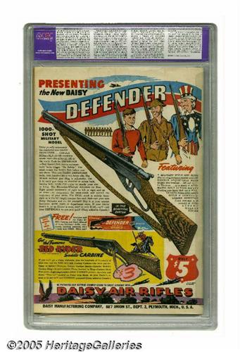 50. Auctioneer offers no opinion as to the validity of a grade assigned by any third-party grading service. Since we cannot examine C.G.A. encapsulated notes or Comics Guaranty Corporation (CGC) encapsulated comics, they are sold "as is" without our grading opinion, and may not be returned for any reason. Auctioneer shall not be liable for any patent or latent defect or controversy pertaining to or arising from any encapsulated collectible. In any such instance, purchaser's remedy, if any, shall be solely against the certification service certifying the collectible.
