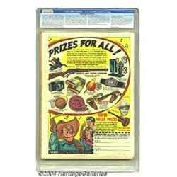 <B>Captain America Comics #2 (Timely, 1941) CGC VF- 7.5 Off-white to white pages.</B></I> Captain America didn't take kindly to Nazi plans for world domination, and he took his grievances straight to the top -- for the second cover in a row, he faced off with Hitler himself! The cover, by Joe Simon, sees Bucky in bondage, and it's the debut of the round shield which Cap is known for (he lugged a less aerodynamic model in his debut). The interior artists include Simon, Jack Kirby, and Reed Crandall. This issue is listed among the 100 most valuable comic books by Overstreet. Plus, it's harder to find in high grade than its predecessor; as of this writing, only one unrestored copy of this issue has been certified with a higher grade by CGC. Overstreet 2004 VF 8.0 value = $8,910. <BR><BR><B>Important notice:</B> Heritage usually auctions material at the rate of 200-250 lots per hour. On some occasions eBay Live bid software or the Internet may not be able to keep up with the pace of the auction. We recommend placing a realistic absentee bid now as insurance to avoid disappointment. Occasionally the auctioneer may eliminate or reject an eBay Live bid, and the auctioneer may also reopen a lot after the close of the eBay live bidding (usually because we missed an audience bid), and may reject your bid even if it shows you as the winning bidder. By bidding via eBay Live, you agree that Heritage may award the lot to another bidder at its sole discretion under the circumstances described above or any other reasonable circumstances. Since eBay bids are not shown to us until we open the lot on the floor, we treat those bids just like floor bids. In most cases the floor responds before the eBay bid is presented to us, due to Internet lag time, so for consistency we have made it a policy that floor bids are always considered first over tie eBay live bids. Also please note that all Heritage lots purchased through eBay Live carry a 20% Buyer's Premium. Please make sure you read the Terms and Conditions before you bid.