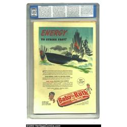 Captain America Comics #32 (Timely, 1943) CGC FN+ 6.5 Off-white pages. During the Schomburg era, when Sir Alex drew nearly every cover for this and other Timely titles, Syd Shores managed a few masterful turns of his own, as with this action-fest World War II scene that would have done Schomburg proud. The colors are like-new, CGC's grade is the result of cumulative wear and stress signs, primarily around the edges. CGC notes, "Name written on interior cover in pen." Overstreet 2003 FN 6.0 value = $585. Important notice: Heritage usually auctions material at the rate of 200-250 lots per hour. On some occasions eBay Live bid software or the Internet may not be able to keep up with the pace of the auction. We recommend placing a realistic absentee bid now as insurance to avoid disappointment. Occasionally the auctioneer may eliminate or reject an eBay Live bid, and the auctioneer may also reopen a lot after the close of the eBay live bidding (usually because we missed an audience bid), and may reject your bid even if it shows you as the winning bidder. By bidding via eBay Live, you agree that Heritage may award the lot to another bidder at its sole discretion under the circumstances described above or any other reasonable circumstances. Also please note that all Heritage lots purchased through eBay Live carry a 20% Buyer's Premium. Please make sure you read the Terms and Conditions before you bid.
