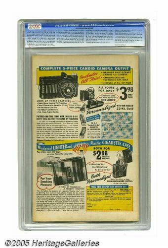 33.Exclusively Internet, CurrencyAuction.com, Amazing Comics Auctions™ and Bullet auctions: THREE (3) DAY RETURN POLICY. All lots (Exception: Third party graded notes are not returnable for any reason whatsoever) paid for within seven days of the auction closing are sold with a three (3) day return privilege. You may return lots under the following conditions: Within three days of receipt of the lot, you must first notify Auctioneer by contacting Customer Service by phone (1-800-872-6467) or e-mail (Bid@HeritageGalleries. com), and immediately mail the lot(s) fully insured to the attention of Returns, Heritage, 3500 Maple Avenue, 17th Floor, Dallas TX 75219-3941. Lots must be housed intact in their original holder and condition. You are responsible for the insured, safe delivery of any lots. A non-negotiable return fee of 5% of the purchase price ($10 per lot minimum) will be deducted from the refund for each returned lot or billed directly. Postage and handling fees are not refunded. After the three-day period (from receipt), no items may be returned for any reason. Late remittance for purchases revokes all Return-Restock privileges.